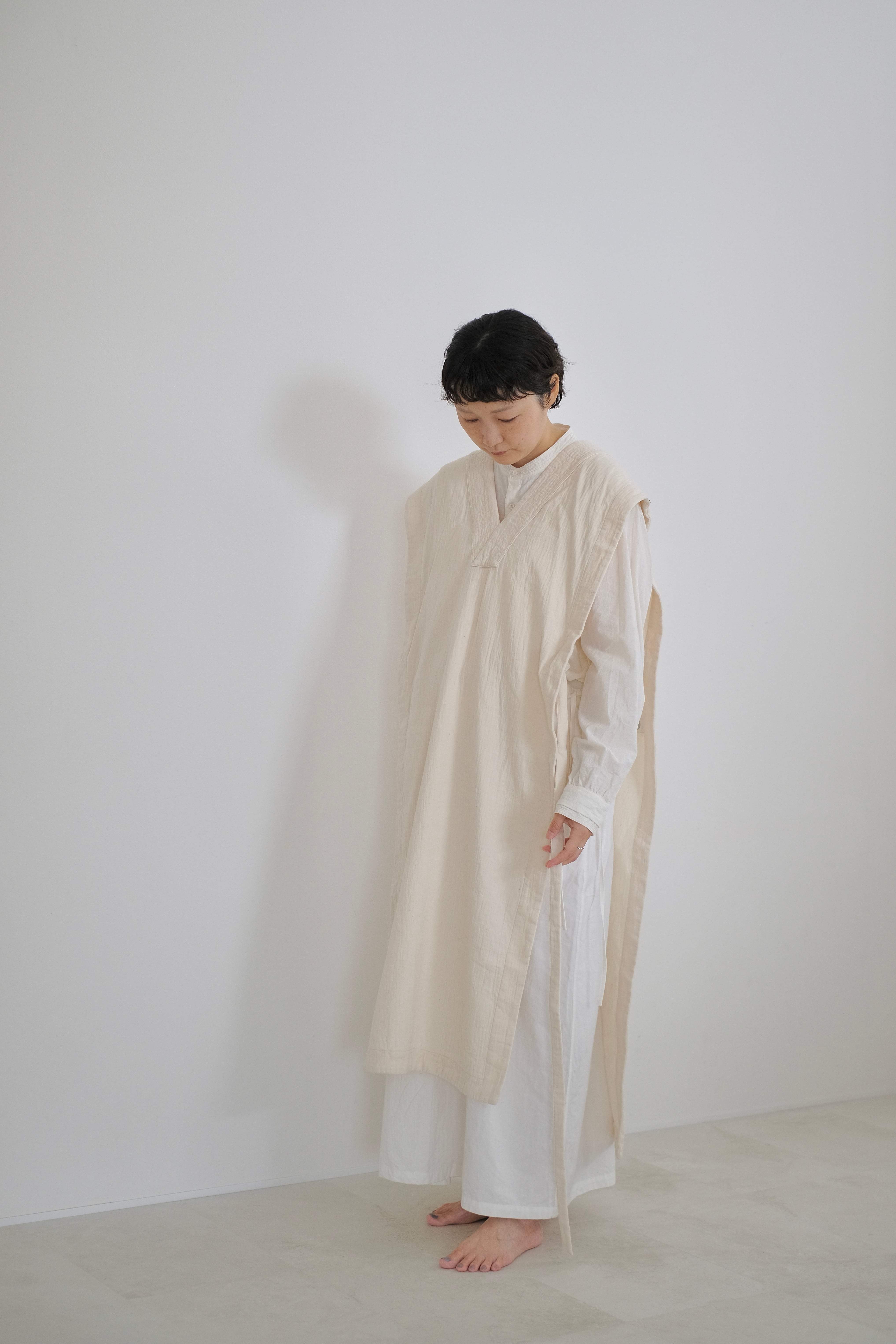 やわらかな二重織りガーゼをふんだんに使い仕立てたGauze cuftanです。