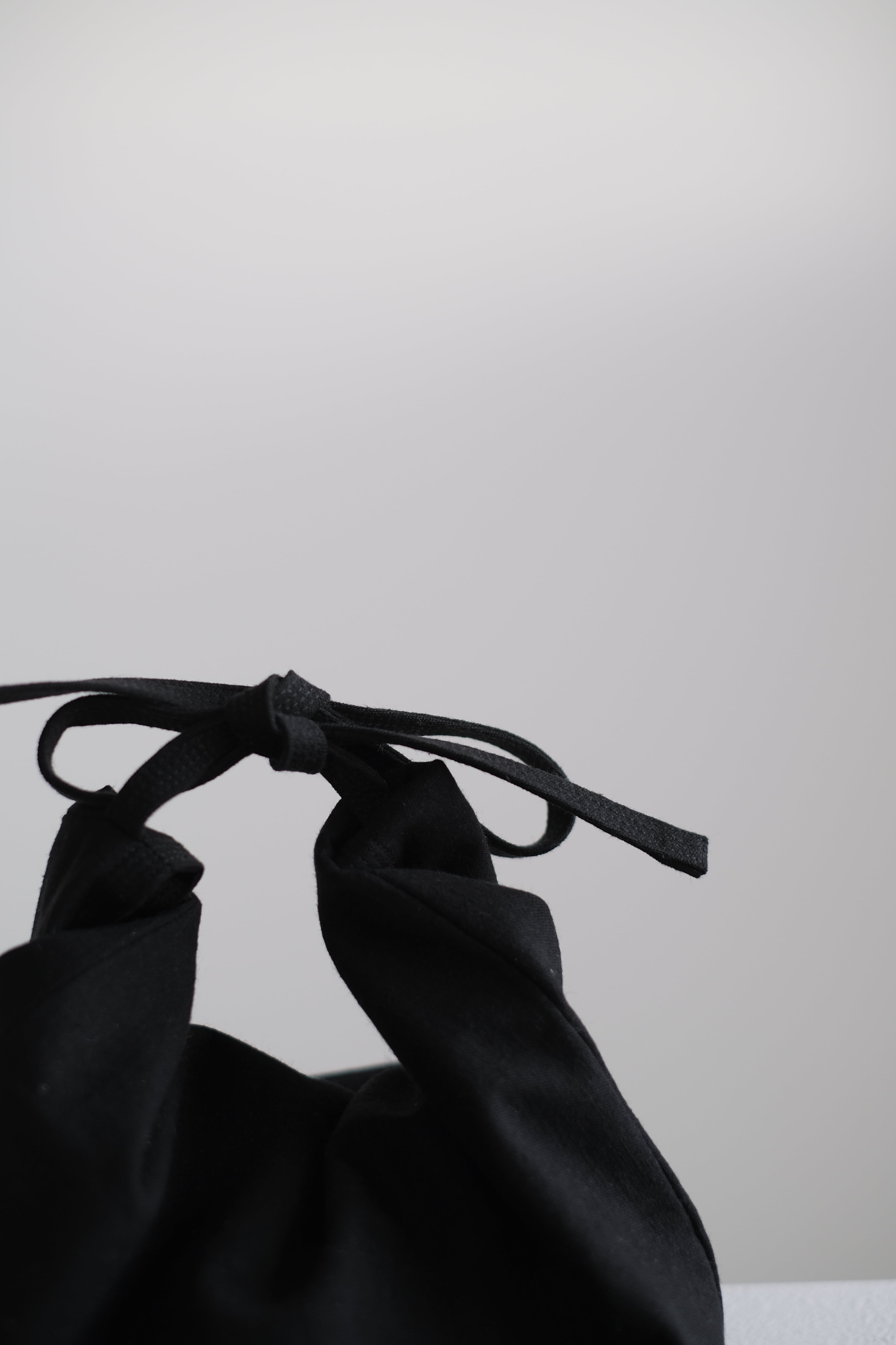 バッグの上部をくるりと巻き、両側の紐を結ぶことで口を閉じられます。