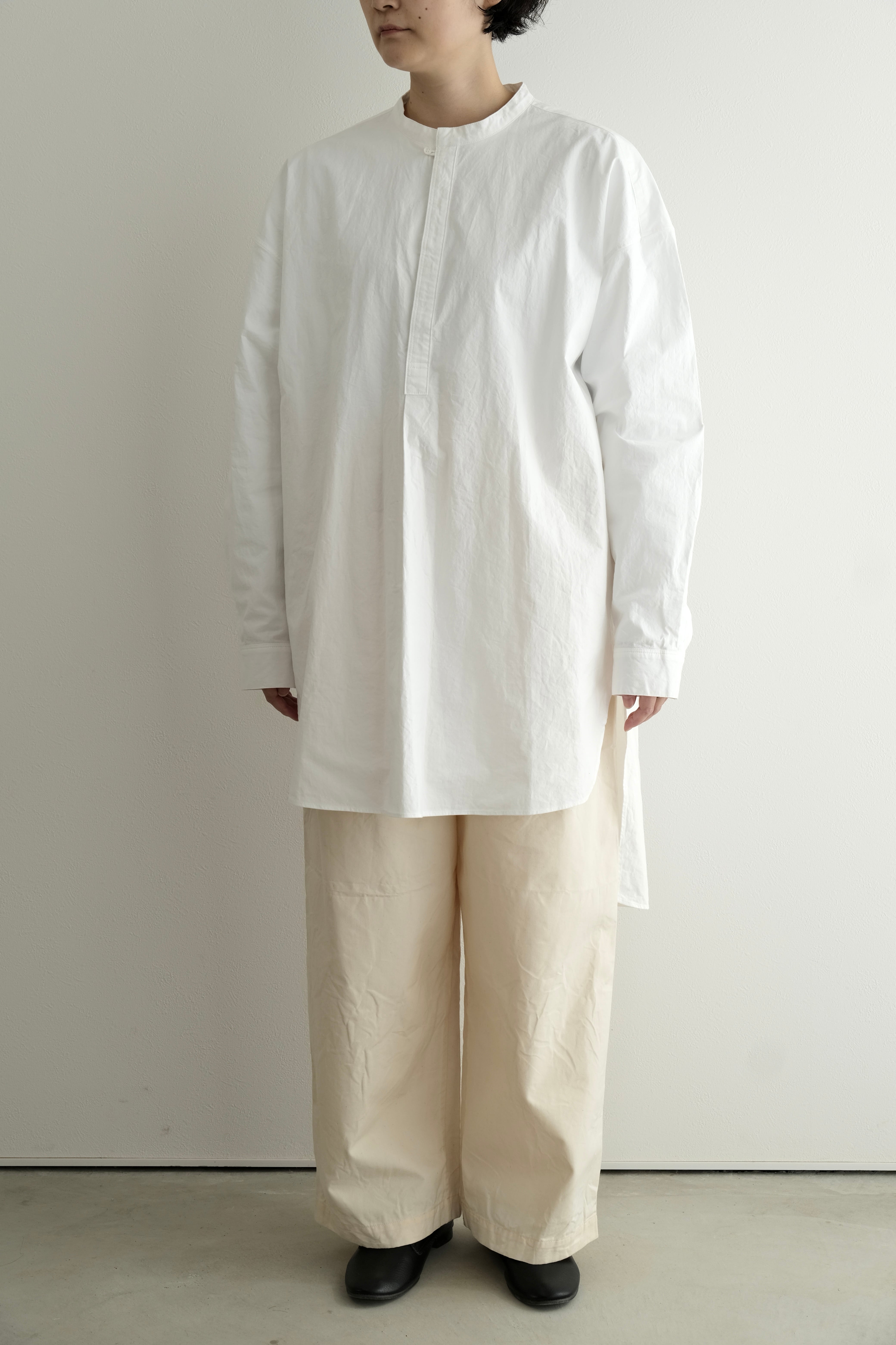 馬布(バフ)素材を使用したプルオーバーのロングシャツです。