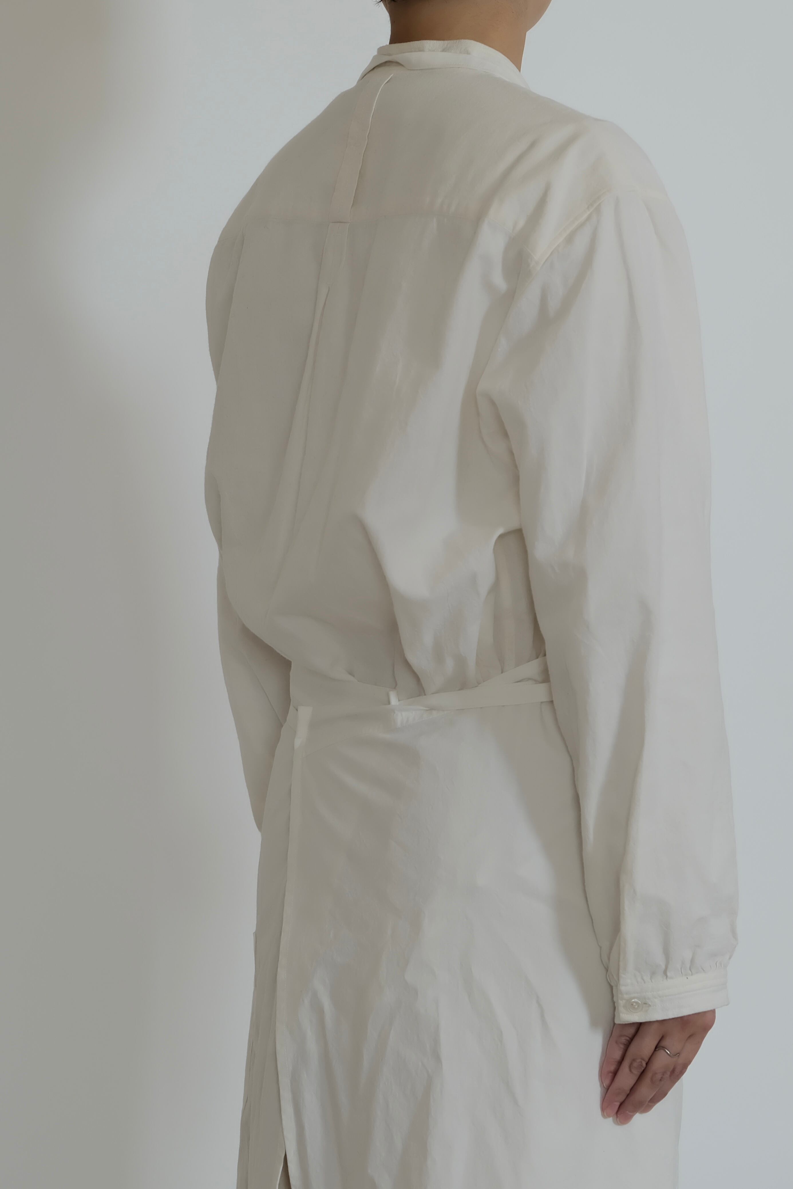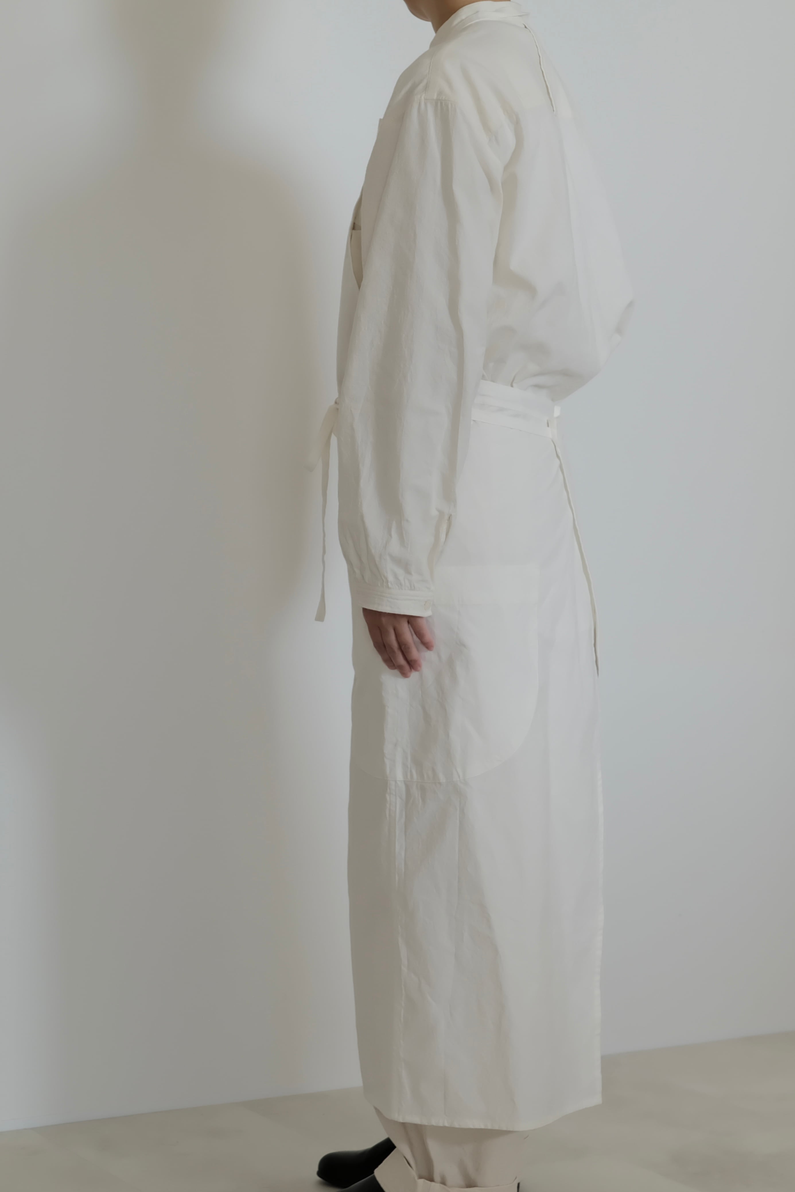 While simple in appearance, the apron creates a refined and elegant look when worn, forming a natural A-line silhouette.